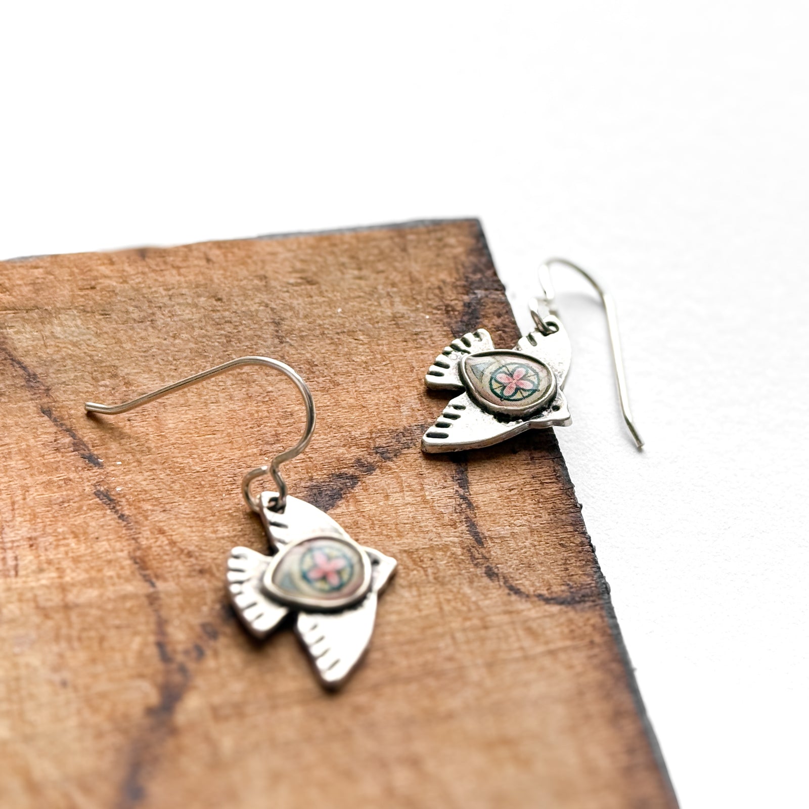Centered Bird Silver Earrings