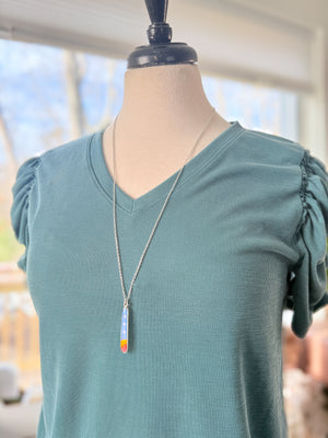 - The pendant measures 47mm long and 8mm wide (1.85" long and .3" wide)